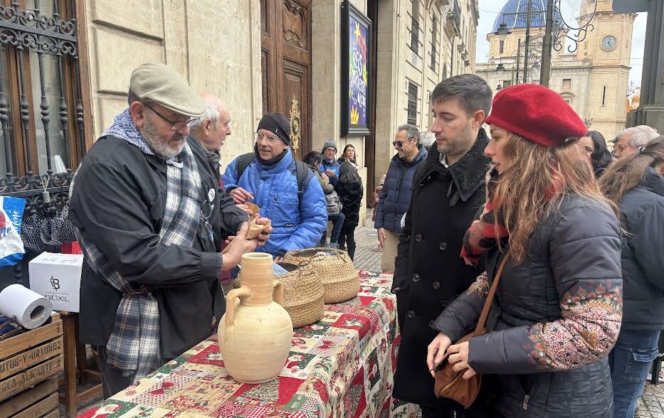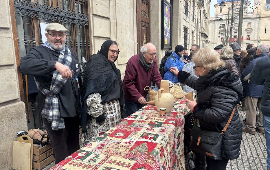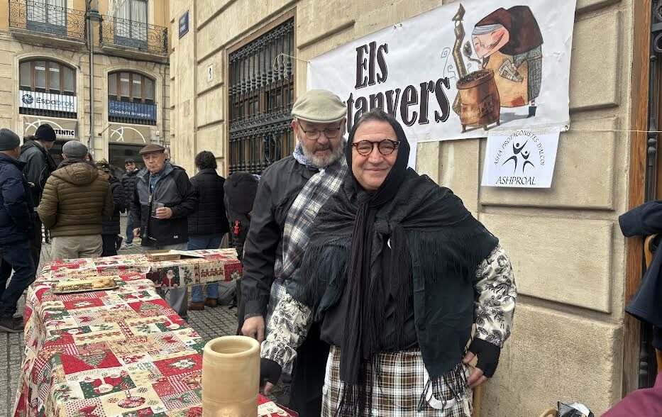 La jornada ha començat amb pluja a primera hora del matí, fet que ha contribuït a accentuar la sensació de fred al centre de la ciutat. Tot i això, nombrosos alcoians i veïns d’altres localitats de la comarca s’han acostat fins al cor d’Alcoi per a gaudir de l’ambient i iniciar així els dies grans de les festes nadalenques. Un dels punts més concorreguts ha sigut, com és tradició, la presència de la Castanyera, que pocs minuts després de les nou del matí ha començat a torrar castanyes a les portes de l’Ajuntament. Allí ha rebut centenars de persones, entre elles les autoritats locals, encapçalades per l’alcalde Toni Francés. Molts han aprofitat per adquirir un cucurutxo de castanyes calentetes, col·laborant al mateix temps amb un donatiu solidari a favor d’ASPROHAL. Nosaltres hem parlat amb Guillermo Ramos, la persona encarregada d’assumir el paper de Castanyera.: