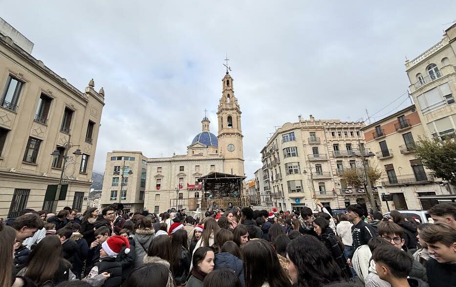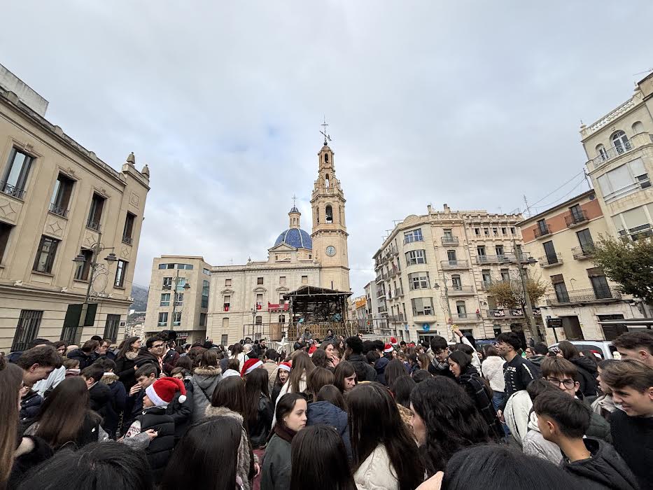 A les dotze del migdia, les campanes de l’església de Santa Maria han sonat amb força per anunciar el Naixement de Jesús, uns voltejos que s’han repetit a la resta de temples alcoians. De manera simultània, els Juniors i centres juvenils de la ciutat s’han concentrat a la Bandeja per a cantar nadales i celebrar l’arribada del Nadal amb la ja consolidada iniciativa de la ‘Sembra d’Estreles’. Don Miquel Amat, vicari de Santa Rosa, ens explicava el que s’havia previst per a aquest any: