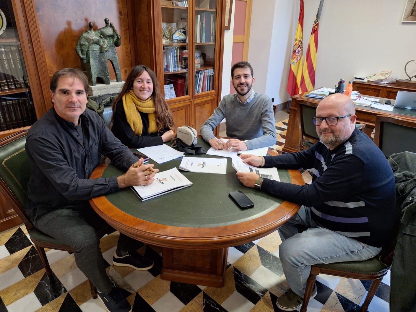 Ignacio-Garcia-Vidal,-director-del-SENT-ME,-Berta-Iniguez,-regidora-de-Cultura_-Jordi-Pla,-alcalde-de-Cocentaina_-i-Quelo-Raigal,-tecnic-de-Joventut-i-Coordinador-de-Cultura