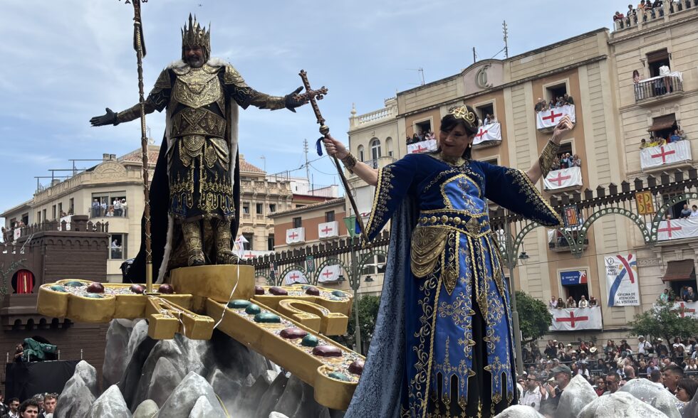 Significatiu ha sigut també el pas de Mossén Torregrosa, encarnat enguany per Rubén Calatayud, i que ha estat acompanyat per la Colla de Campaners d’Alcoi, fent sonar bronzes en un campanar mòbil on figuraven dues antigues campanes de la ciutat que han sigut restaurades recentment. Estandarts i diverses coreografies ens han traslladat ràpidament fins a terres asturianes en un acompanyament en què la Filà ha volgut recordar el personatge històric de Don Pelai. En la part central del boato ha desfilat Fernando Jordà Abad, Alferes Cristià, lluint un disseny guerrer obra de l’alcoià Juan Climent, qui també és component de la Filà Asturianos. Junt a ell, la favorita i esposa, Rosa Jornet, les seues filles i l’acompanyament musical de la banda Ateneu Musical de Rafelguaraf, interpretant un emblema de la música festera de la nostra ciutat: la marxa cristiana Aleluya d’Amando Blanquer Ponsoda.
