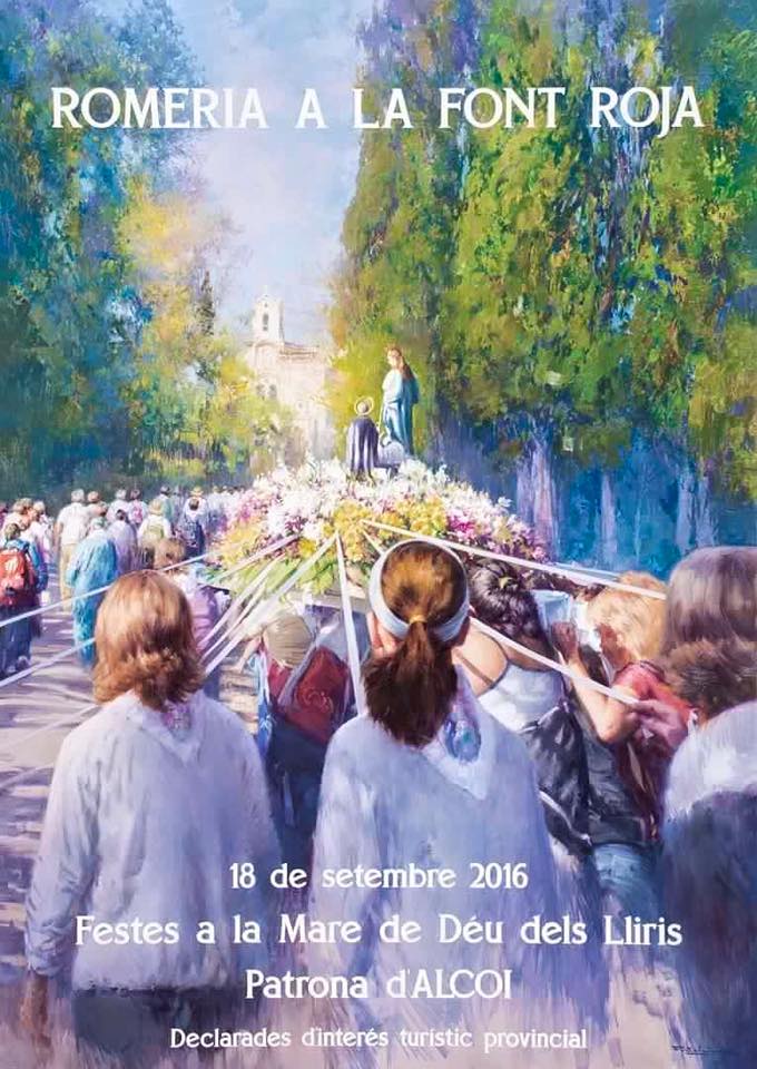 Alcoy lanzó la noche del viernes el programa de actos de la romería a la Font Roja 2016 con el descubrimiento del cartel anunciador, obra de Francisco Calabuig y cuyo descubrimiento fue señalado con un castillo de fuegos artificiales arrancando así un ciclo de actividades que se prolongará hasta finales de mes.