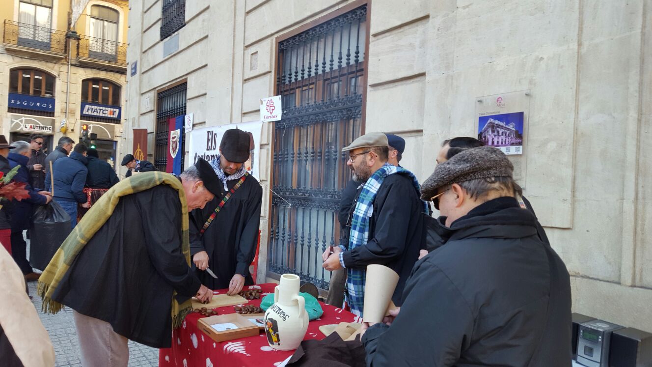 A la visita de la singular ‘Castañera’, que ha instalado su puesto para asar castañas ante el Ayuntamiento, se le ha sumado una masiva concentración a mediodía de los Juniors de las parroquias de la ciudad. Centenares de jóvenes y pequeños han tomado La Bandeja para interpretar villancicos ante el Portal de Belén a justo doce horas exactas de que se conmemore el Nacimiento de Jesús. Este instante ha estado acompañado también por el volteo general de las campanas de la iglesia de Santa María y por la música tradicional. Además el Vespa Club Alcoy ha cumplido con la tradición de su PapaNoelada y de nuevo hemos podido ver a un nutrido grupo personas, ataviadas con el traje de Papá Noel, circulando en vespa por Alcoy así como llamando la atención de los más pequeños.