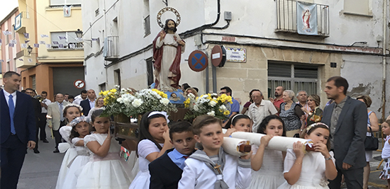 La festividad culminó el pasado viernes 28 de junio y en esta jornada se celebró una misa solemne en la iglesia de Santa María seguida de la procesión del Sagrado Corazón de Jesús en la que tomaron parte numerosos contestanos. En la misma, como es tradicional, tuvieron un papel destacado los niños y las niñas que han recibido este año la Primera Comunión e incluso ellos fueron los encargados de portar la imagen procesional. Al finalizar la misma hubo bailes populares en el patio del Patronat, la entrega de premios de las competiciones deportivas realizadas durante la semana y varios homenajes. El primero de ellos recayó en Ernesto Ferrándiz y José Jordá por su labor en pro del Patronat mientras que el segundo lo recibió el CD Contestano a celebrar en 2019 el centenario de su fundación.