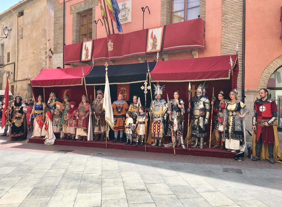La cruz parroquial, seguida por todas las filaes de los bandos de la cruz y de la media luna, han dado paso a los cuatro cargos festeros del 2019: Abraham Moltó García (Abanderado Moro de la Filà Manta Roja), Javier Pascual Motos (Abanderado Cristiano de la Filà Creuats), Rubén Colomina Arroyo (Capitán Moro de la Filà Bereberes ‘Els Borts’) y Màxim Ferrer Sellés (Capitán Cristiano de la Filà Contestanos). Todos ellos, junto a sus favoritas y acompañantes, han centrado todas las miradas al igual que han recibido enormes muestras de afecto por el gran espectáculo que ofrecieron en el día de ayer durante las Entradas.