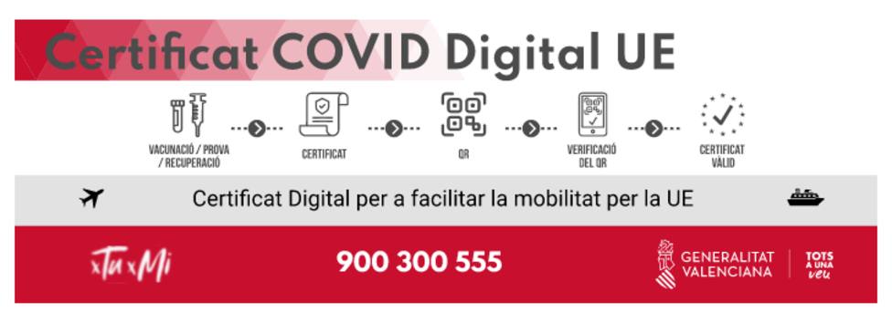 La Comunitat Valenciana ofrece desde ayer la posibilidad de descargar el certificado COVID Digital de la Unión Europea en sus tres variantes a los ciudadanos que ya han sido vacunados, han pasado la infección o cuentan con una prueba reciente negativa. En las primeras 24 horas, 12.769 personas han descargado este certificado: 11.833 certificados de vacunación; 921 certificados de recuperación y 15 certificados de pruebas.