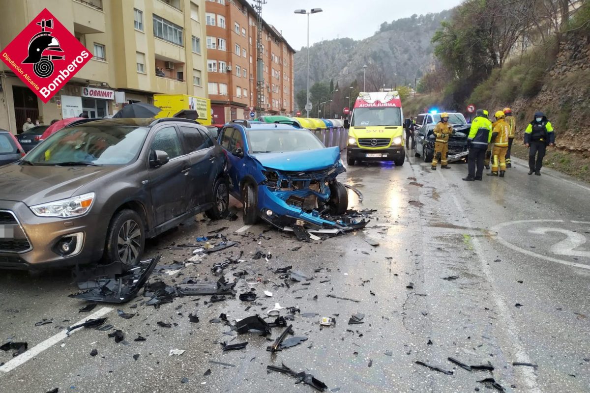 Efectivos del Consorcio Provincial de Bomberos de Alicante han trabajado esta tarde un siniestro que se ha producido en la calle Escultor Peresejo de Alcoy. Se trata de un choque frontal entre dos vehículos y los mismos Bomberos tuvieron que realizar labores para excarcelar del coche a uno de los ocupantes. Los dos conductores resultaron heridos y fueron trasladados al Hospital Virgen de los Lirios.