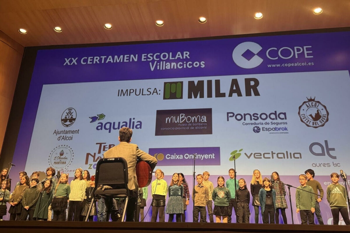 El jueves 18 de diciembre, COPE ALCOY celebró una nueva edición de su tradicional Certamen Escolar de Villancicos, una cita que este año tuvo un carácter especialmente significativo al coincidir con el 20 aniversario de la emisora. El evento registró una gran participación y el Teatro Calderón volvió a llenarse por completo de un público dispuesto a disfrutar de una tarde marcada por la música y el ambiente navideño.