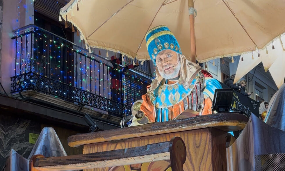 La tradición se ha cumplido y un cuatro de enero más, al anochecer, ha llegado hasta la ciudad de Alcoy el Embajador de Sus Majestades los Reyes Magos de Oriente. El acto del Bando Real ha comenzado pasadas las seis y media de la tarde desde El Partidor y después de que el popular personaje del ‘Tío Piam’ hubiera salido del Teatre Principal junto a los personajes del Belén de Tirisiti con el fin de anunciarnos con su pregón que era momento de dejar todos los quehaceres para salir a las calles a escuchar el mensaje que el Emisario iba a declamar en nombre de Melchor, Gaspar y Baltasar.