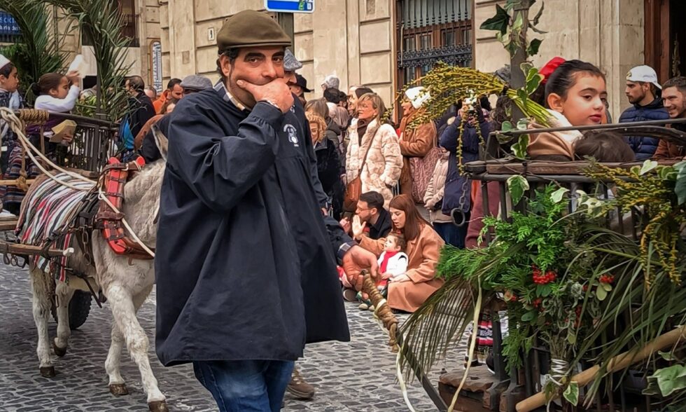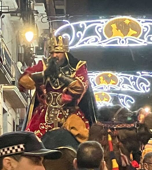 Uno de los momentos más esperados fue La Adoración a la Sagrada Familia en la Plaza de España, sobre las 20:00h, y que se desarrolló bajo una fina lluvia que apenas llegó a entorpecer el instante. Como es habitual, los Soberanos bajaron de sus monturas para acercarse al centro de La Bandeja mientras volteaban con fuerza las campanas de la iglesia de Santa María, sonaba el Aleluya de Haendel y se disparaba un vistoso espectáculo piromusical que aplaudieron los miles de espectadores que presenciaban el momento cubre de nuestra centenaria Cabalgata. Tras ello, y una vez encendida de nuevo la ornamentación navideña, la Cabalgata continuó por la calle Sant Llorenç hasta concluir en la parte final de la Avinguda del País Valencià.