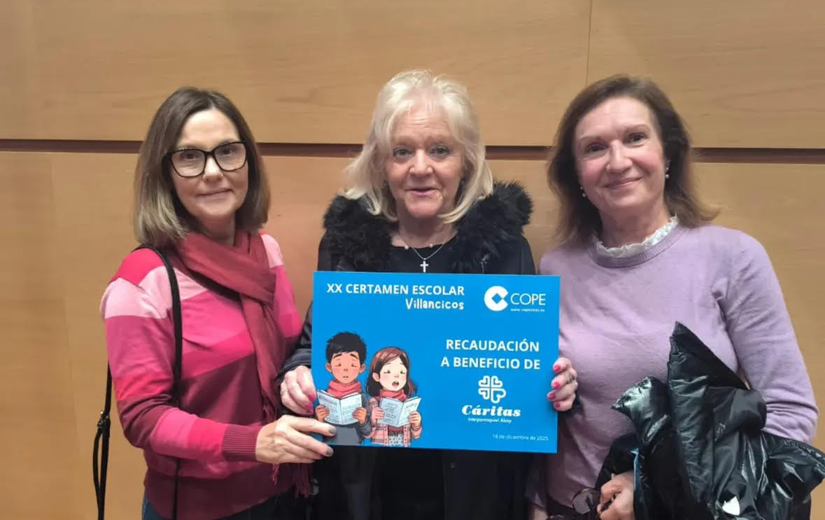 Cáritas recibe la recaudación solidaria del Certamen Escolar de Villancicos de COPE ALCOY