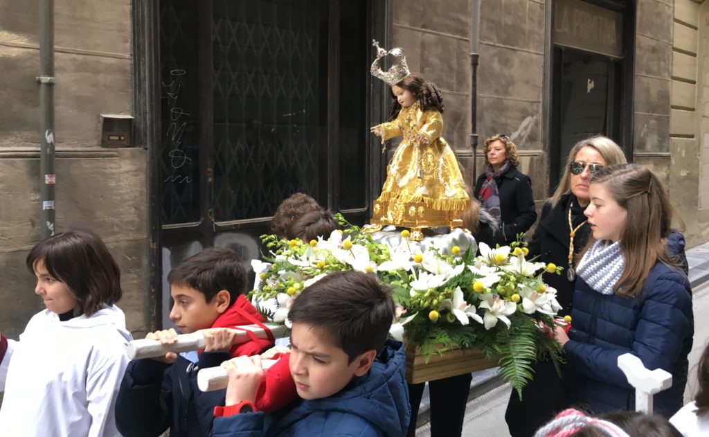 El intenso volteo de las campanas ha advertido a la una del mediodía del inicio de la procesión en la que los niños han llevado en hombros la imagen del Jesuset mientras que componentes del Gremio de Labradores han portado el palio y las andas con la Custodia. El Grup de Danses Sant Jordi ha interpretado diferentes bailes populares a lo largo del recorrido y los más pequeños han lanzado pétalos en las diferentes paradas que se han realizado para la adoración al Santísimo.