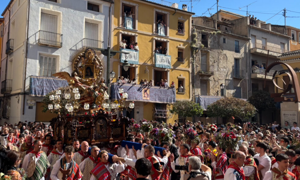 Cocentaina vive hoy el día grande de las fiestas patronales en honor a la Mare de Déu del Miracle, jornada que conmemora el milagro de las 27 lágrimas de sangre vertidas por el icono de la virgen el 19 de abril de 1520 mientras el sacerdote Mossén Onofre Satorre oficiaba la Santa Misa. El traslado de la patrona desde el Monasterio de las Clarisas hasta la parroquia de Santa María ha sido uno de los momentos significativos de la mañana junto con la emotiva Súplica que ha declamado este año Raquel Palací Barber cuando la Mare de Déu ha llegado a las puertas del templo.
