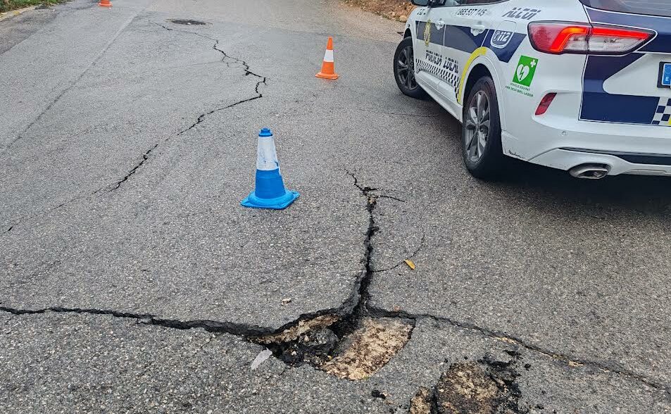 La Policía Local de Alcoy ha decidido cortar este sábado por la mañana la subida de la calle Calderón después de detectar varias grietas en la calzada y un posible riesgo de desplazamiento del pavimento. La medida se ha adoptado sobre las 9:30 horas como acción preventiva para garantizar la seguridad de los viandantes y evitar cualquier incidente en la zona afectada.
