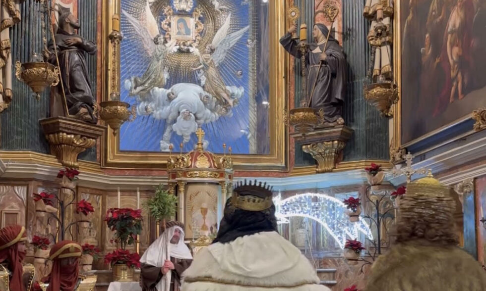 Melchor, Gaspar y Baltasar se dirigieron a La Sagrada Familia, situada a los pies de la patrona contestana, y allí entregaron oro, incienso y mirra al Niño Jesús mientras sonaban de fondo las campanas del templo junto a las notas del emblemático Aleluya de Haendel. Finalmente, los Reyes se dirigieron a sus aposentos del Palau Comtal donde recogerían todo su cargamento para seguir su recorrido por la comarca antes de partir al lejano oriente con la promesa de venir en 2027.