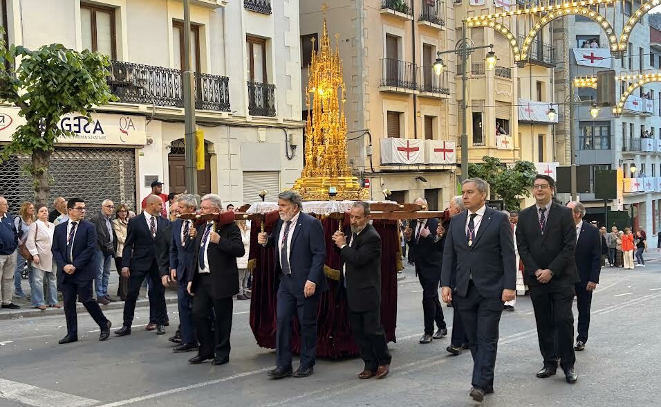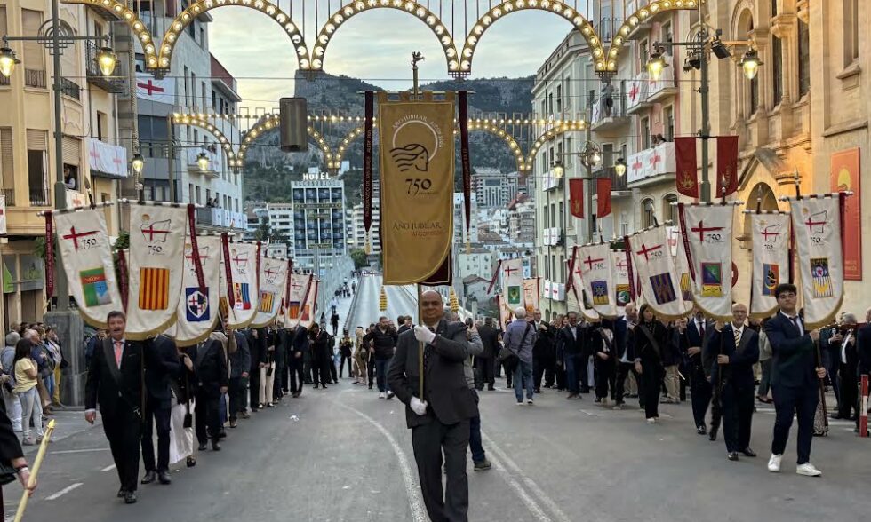 La imagen de ‘El Xicotet’ ha cruzado la puerta del templo entre el volteo incesante de campanas y tras él ha salido a la calle, por primera vez en un día como el de hoy, la Relíquia del patrón para ser trasladada a Santa María donde presidirá el Tríduo en honor al insigne mártir que arranca mañana. Por otro lado, han tomado parte en la procesión los guiones jubilares de cada Filà y el estandarte oficial de la efeméride que han sido bendecidos al llegar a Santa María. Parte de la Corporación Municipal, con el alcalde Toni Francés al frente, y el clero encabezado por Don Jesús Fuentes como Vicario de Sant Jordi ha puesto fin a esta extraordinaria Procesión del Traslado que anticipa a la apertura de la Puerta Santa del próximo 23 de abril con el que comenzará el Año Jubilar por el 750 aniversario de San Jorge.