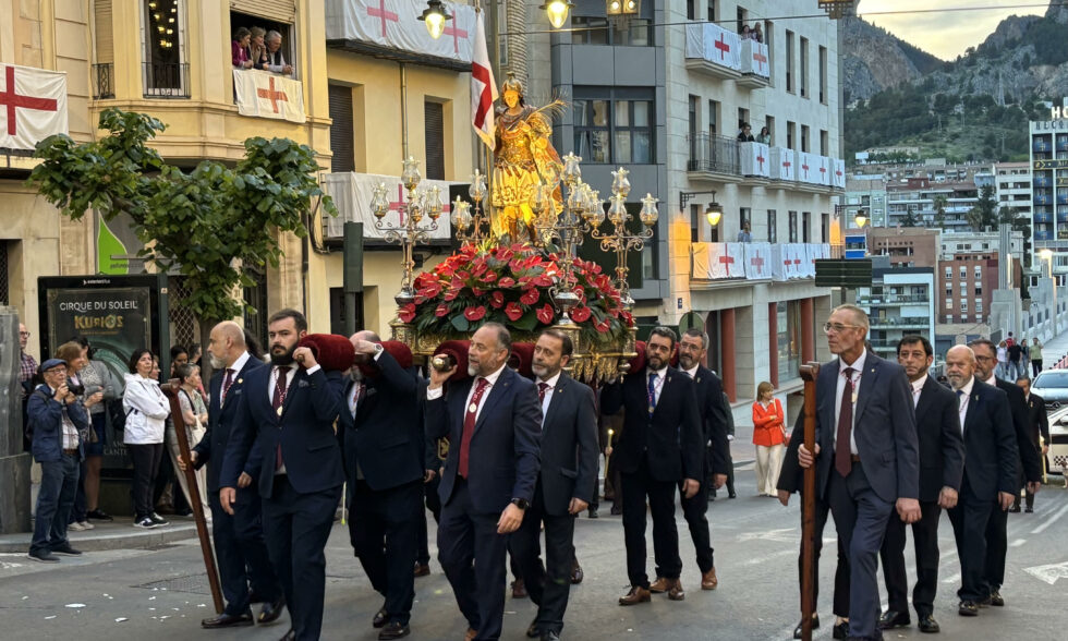 Alcoy se encamina hacia el inicio de la conmemoración del 750 aniversario del patronazgo de San Jorge, una efeméride que se va a celebrar desde el próximo 23 de abril en el marco del Año Jubilar que nos ha concedido la Santa Sede para conmemorar esta fecha tan especial. El pórtico a la apertura del Jubileo ha sido la tradicional procesión del traslado de San Jorge ‘El Xicotet’, que ha tenido lugar esta tarde, y que ha abierto también la programación religiosa de las inminentes Fiestas de Moros y Cristianos.