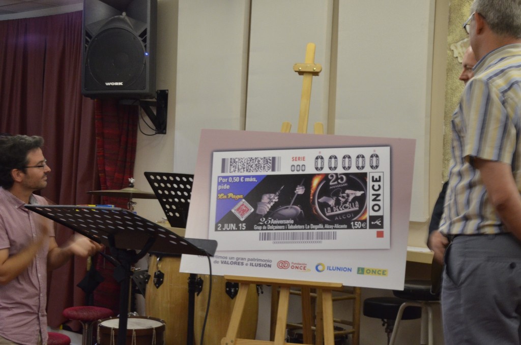La Degollà protagonizará el cupón de la ONCE del próximo 2 de junio para conmemorar el 25 aniversario del grupo. Será un total de cinco millones y medios de cupones los que se comercializarán por toda España. El pasado martes se realizó la presentación de este cupón a las 20:30 de la tarde en las instalaciones de la Piscina Municipal José Trenzano Alós. En el acto estuvieron presentes el Presidente de la Degollà, Josep Pons Martí que se encargó de presentar y dirigir la presentación.