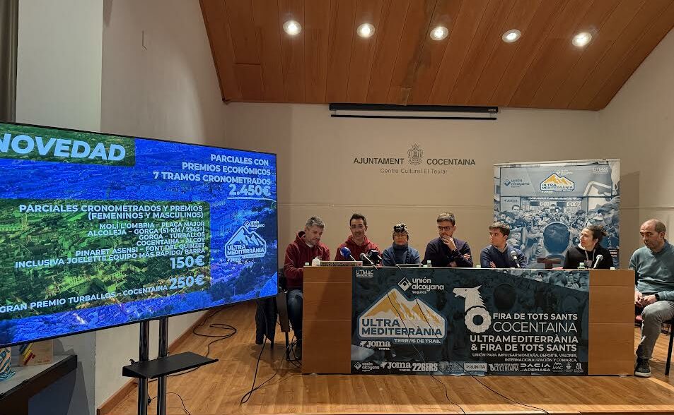 La prueba contará con un máximo de 1.500 participantes, con las inscripciones agotadas, y se desarrollará sobre un trazado singular que recorre ocho cimas de más de mil metros y atraviesa quince municipios. Cocentaina tendrá un papel destacado como punto de paso y avituallamiento, uno de los más animados y mejor valorados por las personas corredoras. Entre las principales novedades figura la VolRace, una carrera específica para el voluntariado que se celebrará el 22 de enero y que discurrirá íntegramente por el término municipal de Cocentaina, con salida y llegada en El Teular y paso por el entorno del Castillo. Además, se incorporan tramos cronometrados con premios económicos, patrocinados por la Fira de Tots Sants, que refuerzan el atractivo deportivo “esta colaboración entre la Fira y la prueba es una muestra clara de cómo la misma Fira de Tots Sants se ha convertido en una marca transversal, capaz de abarcar ámbitos como el deporte, la cultura y el patrimonio. La alianza refuerza la internacionalización de la Fira y consolida el proceso de desestacionalización, con actividades que mantienen vivo el espíritu de la Fira a lo largo de todo el año”, afirmaba el alcalde de la Villa Condal, Rubén Muñoz, durante la presentación de la prueba en la Villa Condal acompañado de Marcela Richart (edil de Fira) y Adri Botella (edil de Deportes). Junto a ellos estuvieron también David Miró y Raül Barrachina, coordinadores de la competición, al igual que Esteban Faus y María Gilabert como representantes, respectivamente, del Centre Excursionista Contestà y el Socarun ya que ambas entidades van a colaborar en la actividad.