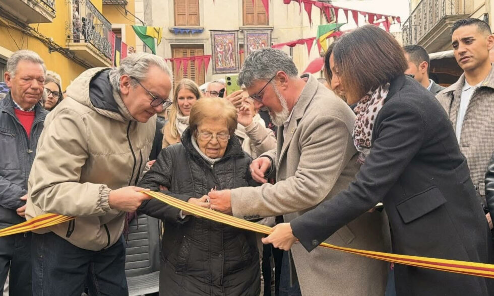 El certamen ha sido inaugurado oficialmente esta mañana después de que en la tarde de ayer comenzara a funcionar la actividad comercial del Mercado Medieval y se abrieran también las diferentes exposiciones que dan forma a la oferta cultural que presenta este año el certamen. La jornada ha estado condicionada por la adversa climatología, ya que ha amanecido con lluvia y frío, pero a la hora del inicio del acto inaugural tan solo estaban los cielos cubiertos con alguna fina llovizna en algún momento que no ha impedido el desarrollo de la habitual ceremonia. Esta ha dado inicio en la Placeta Molina ante el Ayuntamiento, pasadas las once y media de la mañana, y ha arrancado con un homenaje a la firma ‘Electromur’ en reconocimiento a la trayectoria empresarial que desde hace décadas desempeña tanto en la localidad como en el conjunto de la comarca. A continuación, se ha interpretado el Himno del Tío Pep, y se ha procedido al corte de la cinta a cargo de  Mª Carmen Sanjuan Llorens, una de las personas más mayores de Muro en estos momentos.