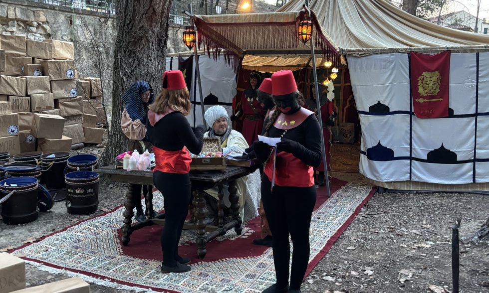 En este mágico enclave, los visitantes pudieron ver a los camellos que Sus Majestades utilizarán para recorrer las calles alcoyanas, así como a las burritas que participaron en el cortejo del Embajador Real, encargadas de recoger las cartas de los más pequeños. El Escriba ha estado ocupado leyendo las misivas mientras centenares de pajes trabajaban arduamente empaquetando regalos para ser entregados esta noche en cada hogar alcoyano. Al igual que en anteriores ediciones, los asistentes tuvieron acceso a las jaimas donde los Reyes se han alojado para descansar pero también vieron de cerca la guardia que custodiaba el recinto junto a los animales o astrólogos que acompañan a los Monarcas en esta nueva visita a Alcoy