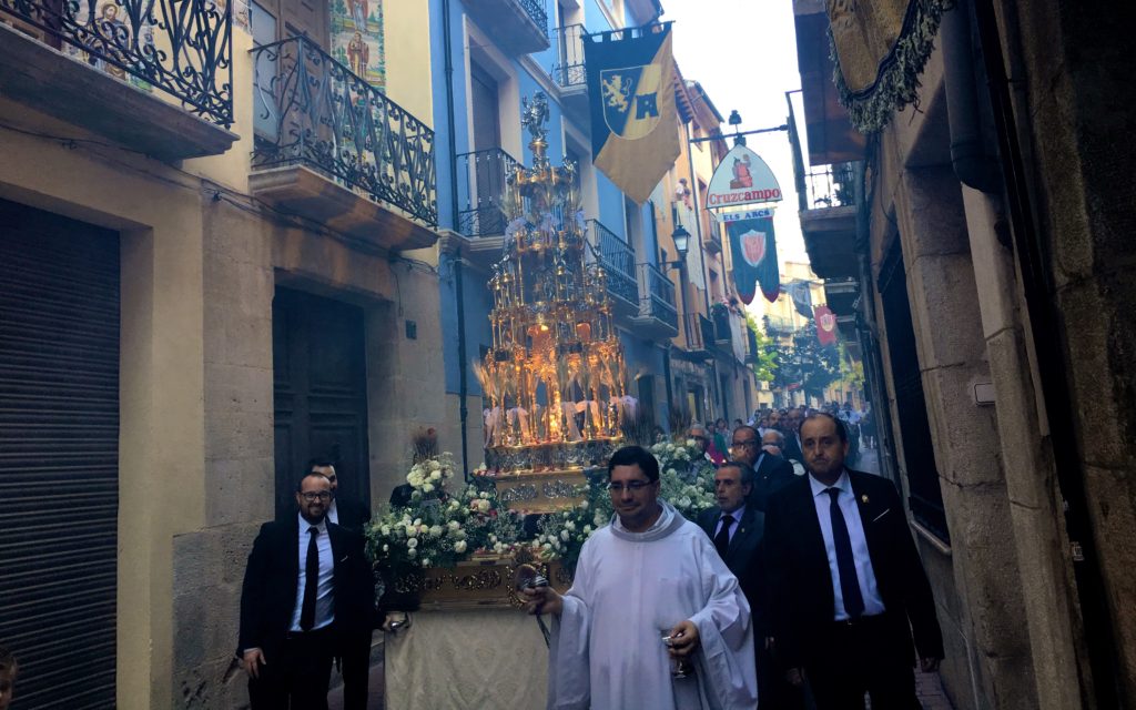 Cocentaina ha celebrado este domingo 18 de junio la fiesta del Corpus Christi en la que ha destacado un año más la solemne procesión que ha partido pasadas las siete y media de la tarde desde la parroquia de Santa María. Previamente se ha oficiado en este templo una misa a cargo del Guardián del Convento de los Padres Franciscanos, Fray Fernando Fuertes, junto a Don Ramón Micó (párroco de El Salvador) y Don Eduardo Rengel (párroco de Santa María).