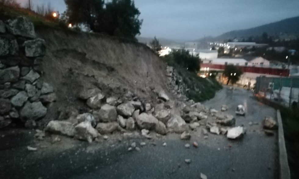 En Alcoy, el temporal de lluvias provocó ayer el desprendimiento de parte de un muro en el vial de acceso al Ecoparque. Por este motivo se procedió a cortar el tráfico por este vial, para retirar el desprendimiento y evitar problemas. El Ecoparque estará cerrado este domingo y el lunes (día que habitualmente cierra), estando previsto reabrir el martes.