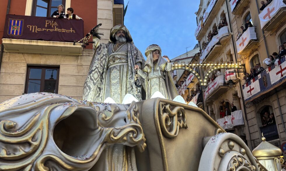 El Embajador Moro, cargo que desempeña Óscar Martínez, ha abierto el acompañamiento junto al portador de la bandera a caballo. Tras ellos, hemos podido ver la heráldica del cargo y, seguidamente, nos hemos adentrado en todo un oasis de fantasía en el que hemos podido disfrutar de diversas coreografías, demostraciones de equitación e incluso la recreación de un espectáculo de marionetas. También ha despertado enorme expectación el paso del Santón, asesor espiritual que antaño ejercía como personaje antagonista de Mossén Torregrosa, y que la Filà ha querido recuperar en esta ocasión. Rafa Segura ha asumido esta responsabilidad desfilando por las calles de Alcoy arropado por emires a caballo y portadores de estrellas.