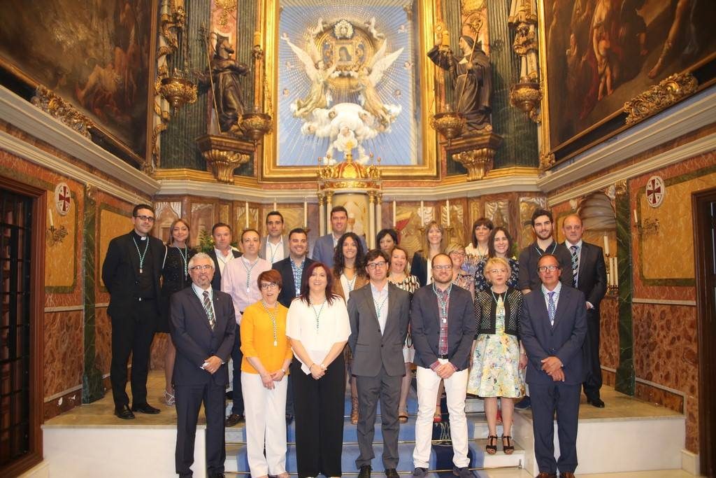 El Monasterio de la Mare de Déu del Miracle de Cocentaina acogió el pasado domingo la celebración de la eucaristía en la que se produjo el relevo en la junta de la Pía Unión, entidad que se encarga de organizar los actos de las fiestas patronales en honor a la Mareta. En el transcurso de la eucaristía se impusieron las medallas de la Virgen a los nuevos integrantes de la Junta así como a los presidentes, Cristian Barrachina y Reis Pascual, que cogen el testigo de Ricardo Brotóns y Mari Luz Morant tras su elección a finales del pasado mes de abril. La ceremonia concluyó con varias fotos de familia a los pies de la Mare de Déu entre los componentes de la Directiva saliente y la entrante.
