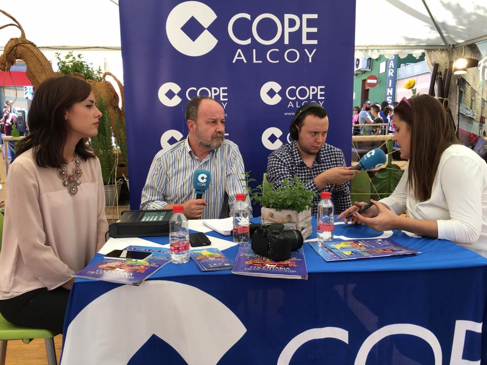Cope Alcoy ofrece un año más una amplia y completa cobertura para promocionar la Fira de Tots Sants de Cocentaina a través de la radio, de nuestro portal web www.copealcoy.es y de nuestras Redes Sociales (Facebook, Twitter e Instagram). Esta se suma a la difusión previa realizada para informar de la actualidad que ha generado el Certamen y de actos como la Presentación Oficial de la 671 edición el pasado 6 de octubre o la inauguración de las exposiciones culturales del viernes 27 de octubre. Además, antes del comienzo de la Feria del 2017, han pasado por los estudios de Cope Alcoy la alcaldesa, Mireia Estepa, y la concejala de Fira, Mariona Carbonell, para contarnos todas las novedades de este año.