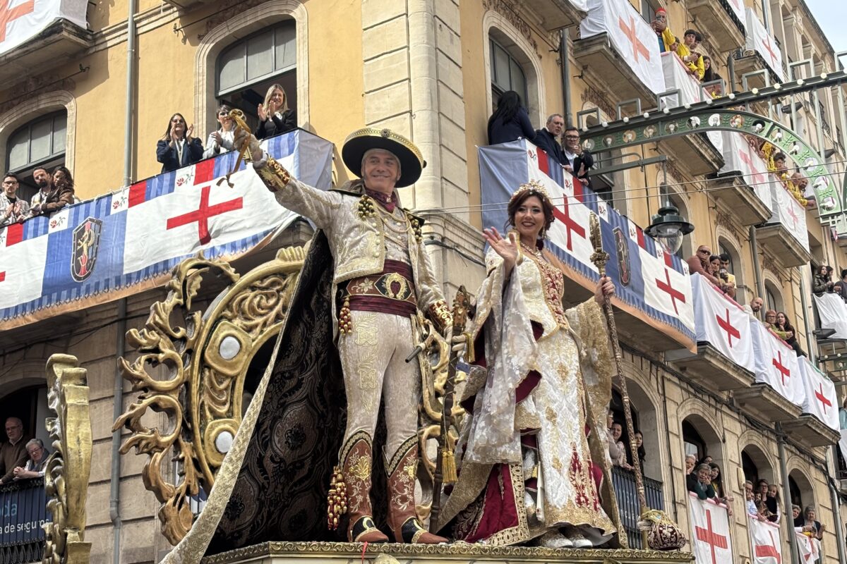 A través de un cuidado conjunto de coreografías, el público ha sido conducido por enclaves tan emblemáticos de Andalucía como la Alpujarra, Granada y la monumental Alhambra, en una propuesta que ha destacado por su equilibrio entre estética, ritmo y evocación cultural. No faltado tampoco detalles particulares como el aroma a azahar, la evocación de la primavera y la presencia constante de flores que han creado una atmósfera cálida y luminosa en la mañana gris de este 25 de abril, envolviendo la figura del Capitán Cristiano en su paso triunfal por la ciudad. Javier Ferrándiz Giner ha hecho su aparición en carroza, acompañado por su mujer en el papel de Favorita, Chelo Zamorano, y sus hijos Sergio y Clara, que han ejercido como Rodellas, y con visible emoción ha recibido las llaves de Alcoy de la mano de la Filà Alcodianos cuando las campanas de Santa María han anunciado su llegada a la Plaza de España. En todo el desfile lo ha acompañad la Banda de Beniarrés, que ha interpretado las piezas creadas expresamente para la ocasión: Capitán Ferrándiz de Féliz Ruiz y Javier Ferrándiz de Javier Martínez.
