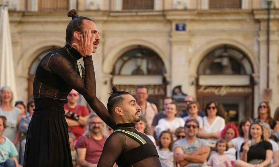 A les 18:30h el públic podrà gaudir d’una de les 4 estrenes absoluts de la Mostra. Es tracta de Soy, de la Cia.. Balde Ruiz i Paloma Calderón, d’Andalusia. L’espectacle proposa un crit d’apoderament i llibertat, una oda a la plenitud del plaer femení, desafiant la soledat i la culpa. Una catarsi compartida amb el públic que celebra la vida. I a les 19h, la formació andalusa DDC Dansa Daniel Doña presenta Doma. Aquesta peça breu representa com a metàfora la relació entre els humans i les màquines, sotmeses al mateix domatge que van fer als animals per a emprar-los en el seu benefici. I és obra del prestigiós coreògraf i ballarí Daniel Doña, qui ha fet des del flamenc una investigació dels moviments d’avantguarda. Totes dues iniciatives seran en l’emblemàtica Plaça de Dins.