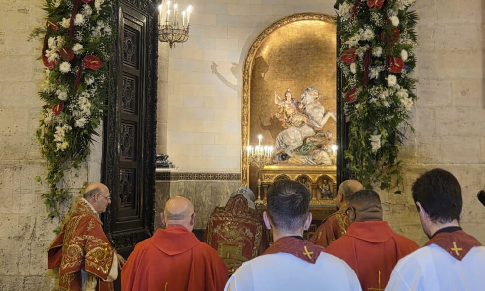 El ritu ha conclòs amb l’Himne a Sant Jordi i la benedicció final davant la imatge eqüestre del patró. Posteriorment, els assistents han pogut venerar la relíquia, sent el Sant Jordiet el primer a besar-la. Amb l’obertura de la Porta Santa, s’inicia ara un any en què fidels i pelegrins podran acudir al temple jubilar per a venerar Sant Jordi i obtindre la indulgència plenària.
