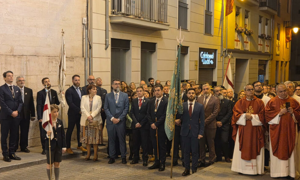Després de l’ofici religiós, ha tingut lloc una breu processó en la qual autoritats i clergat han acompanyat la Relíquia de Sant Jordi fins a l’església del patró. De nou, la creu jubilar ha obert la marxa, seguida dels guions de les Filaes i dels estendards de les confraries. En el seguici també han estat presents els protagonistes de les festes d’enguany, junt amb Mateo Vilaplana Blaak, Sant Jordiet 2026. Ja al carrer Sant Blai, Don José Vilaplana ha pronunciat diverses oracions i ha procedit a l’obertura de la Porta Santa, en un moment especialment emotiu, acompanyat pel repic de campanes i el dispar de 23 salves d’honor. L’acte ha estat ambientat amb una peça musical composta expressament per a l’ocasió per Francisco Amaya, que ha emocionat els assistents.