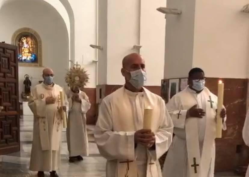 Las Parroquias de Alcoy celebraron ayer domingo 6 de junio la festividad del Corpus Christi y lo hicieron en un acto único que tuvo lugar en la Iglesia de Santa María a partir de las 18:30h. Por segundo año consecutivo la pandemia del Coronavirus impidió salir a la calle con la tradicional Procesión en la que toman parte también los niños de Primera Comunión, los Gremios y entidades religiosas de la ciudad o los bailes populares del Grup de Danses Sant Jordi.