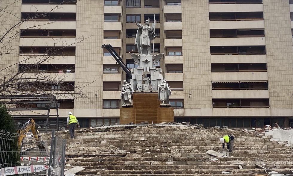 Les obres de La Rosaleda no deixen d’avançar i durant aquesta setmana s’ha desmuntat l’estructura de ferro que recau al carrer Cid mentre que en la superfície és totalment visible la retirada de jardins o paviment. El que segueix encara en peus és el Monument dedicat a Sant Jordi que presideix l’anomenada Plaza de la Constitució, una peça que tampoc serà aliena a la remodelació que s’està executant en aquest enclavament de cara a adaptar-ho a la legalitat.