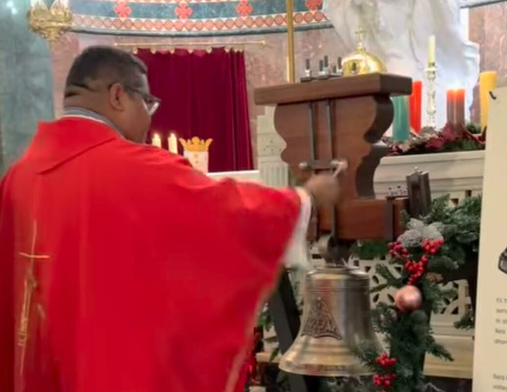La Colla de Campaners d’Alcoi va celebrar el passat 6 de desembre la festivitat de Santa Bàrbara, patrona dels campaners, amb una eucaristia a l’església de Sant Jordi. Durant el transcurs de la mateixa es va dur a terme la benedicció de la nova campana dedicada als Reis Mags, una peça singular amb la qual comptarà a partir d’ara la ciutat, i que precisament va ser beneïda pel titular de les parròquies del Centre, Don Jesús Fuentes.
