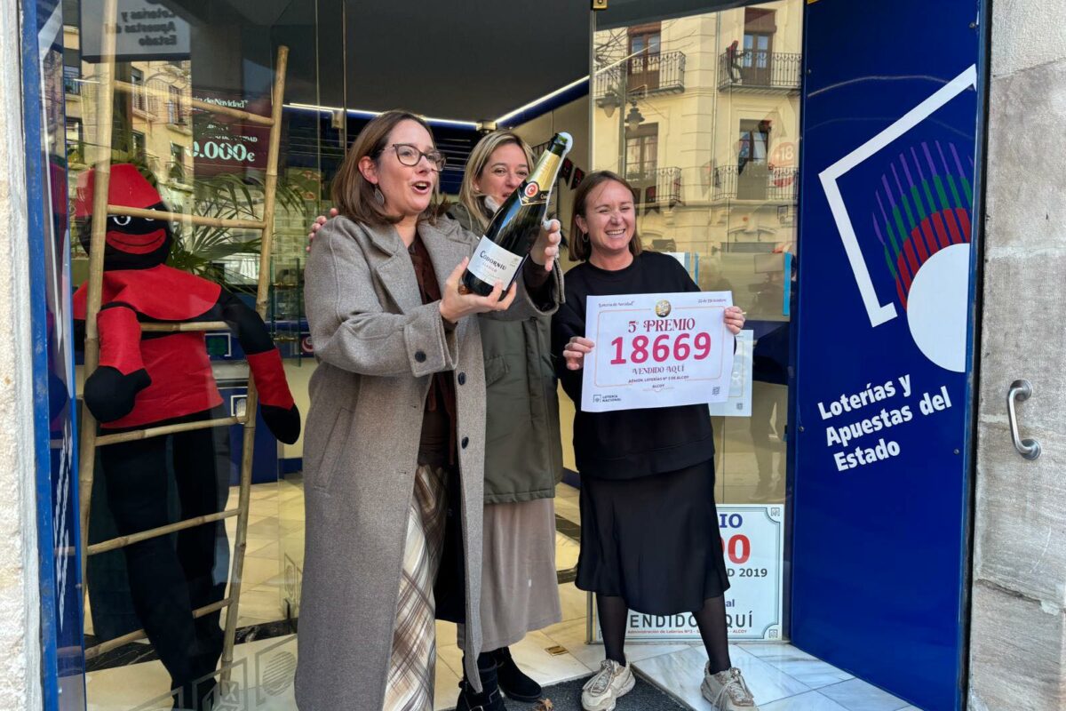 L’administració número 3, situada al carrer Sant Tomàs número 6, ha repartit l’últim cinqué premi de la jornada gràcies al número 18.669. En concret han anat a parar fins a la capital de L’Alcoià 9,6 milions d’euros que han estat molt ben repartits per la ciutat “és un número amb molts abonats i també el tenen entitats com la Penya de l’Athletic Club de Bilbao d’Alcoi. El tenen persones vinculades a la Residència Emilio Sala, treballadors del centre i fins i tot familiars de residents. Ha sigut una alegria perquè el sorteig ja s’acabava i pensàvem que Alcoi no tocaria res”, explicava en directe a COPE ALCOI Carolina Domínguez, empleada de l’administració. Cal destacar que aquest mateix establiment ja va repartir la sort l’any 2019 amb el número 26.590, agraciat amb el Gordo. Junt al premi d’Alcoi, destaca també un dècim del tercer premi, el número 90.693, venut a l’Estanc d’Evarist d’Onil. “Només ha eixit he començat a rebre telefonades dient-me que havia repartit la sort. Ha sigut una alegria”, explicava Puri Santonja, treballadora del negoci, també a COPE ALCOI.