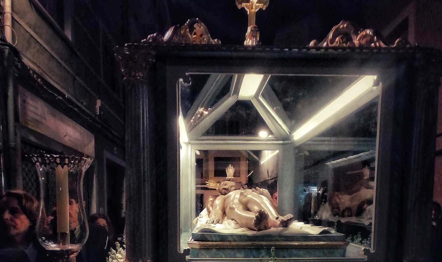 Una circumstància idèntica es dona a Banyeres de Mariola, on Santa María Magdalena és també patrona i és present en els actes del Divendres Sant. La talla participa en el Viacrucis matinal que parteix des de la parròquia en direcció a l’ermita del Sant Crist amb la participació, a més, del Nazareno i La Dolorosa. Don Ramón Micó, rector del poble, va dirigir el res del citat Viacrucis i va acompanyar la meditació de les diferents estacions fins a arribar al ermitori on es trobava el pas de Crist Crucificat. Després, totes les imatges van emprendre el camí de retorn al temple fent una parada en l’ermita de La Malena per al res dels set dolors de la Verge.