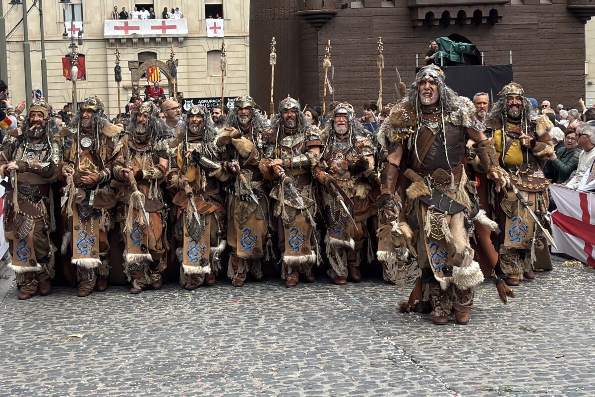 L’Entrada Cristiana continua avançant pels carrers del centre d’Alcoi i, després del pas del Capità de la Filà Andaluces, han arribat les Filaes Aragonesos, Alcodians, Cruzats, Muntanyesos, Tomasines, Navarros i Almogàvers. Esta última formació ha marcat enguany l’ecuador del desfilada, ja que ha tret al carrer, en el bàndol de la Creu, la sempre esperada Escuadra del Mig.